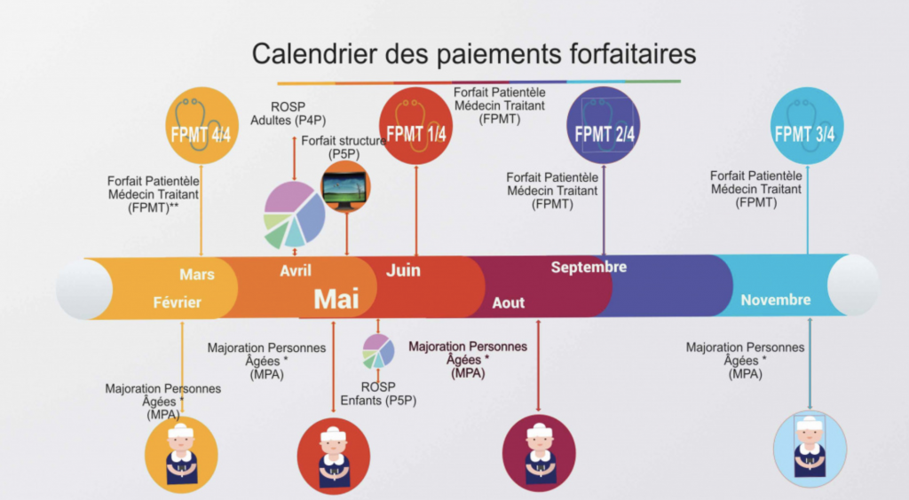 Les premiers forfaits apparaissent en 1998 pour mettre en valeur la fonction du « médecin référent ». Pour des raisons idéologiques, ce forfait disparait pour devenir le forfait « médecin traitant » définissant le médecin généraliste comme porte d’entrée principale du système de santé. S’en sont ensuivi des forfaits sur objectifs de santé publique, très controversée par l’Ordre, puis des forfaits structures, etc. Aujourd’hui les forfaits représente pour certains médecins jusqu’à 30% de leur revenu.